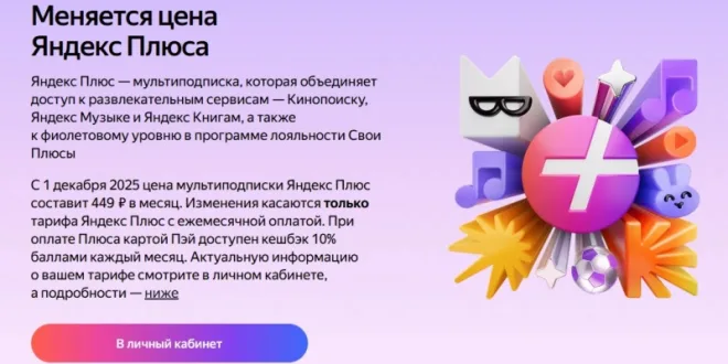 С 1 декабря 2025 года стоимость подписки «Яндекс Плюс» вырастет с 399 до 449 рублей в месяц. Это изменение касается только ежемесячного тарифа. В статье разберём, почему цены повышаются, что входит в подписку и как сэкономить на её оформлении. Вы узнаете, как получить максимум выгоды от использования сервисов «Яндекса» даже после повышения стоимости.